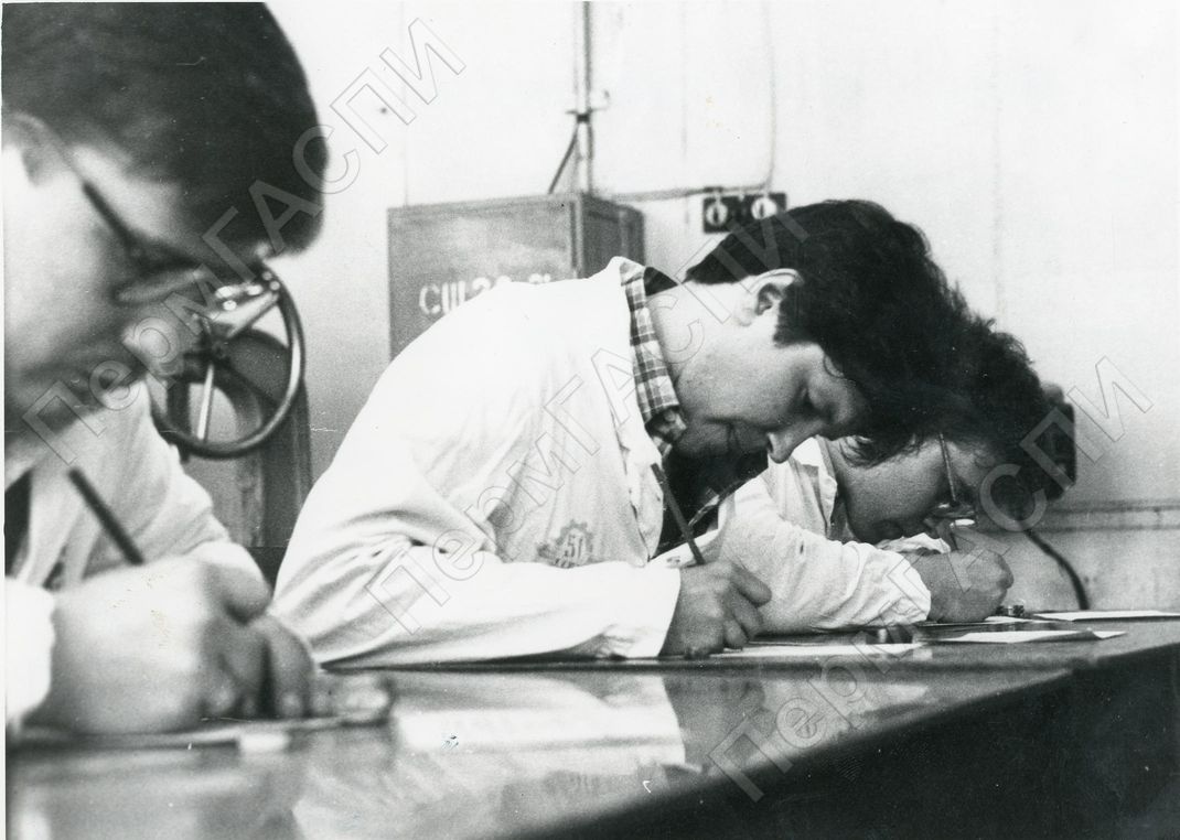 Финал конкурса профессионального мастерства среди слесарей-сборщиков. В центре победитель Новошинов А. Цех 51. ПО "Моторостроитель" им. Я.М. Свердлова