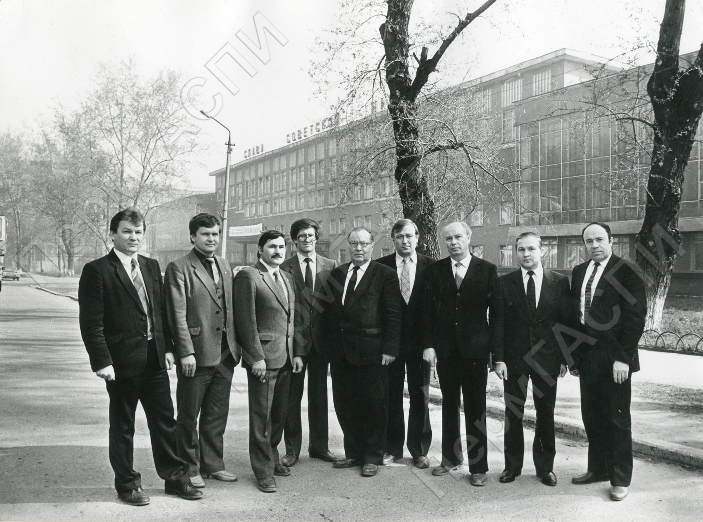Администрация, руководители общественных организаций университета в день празднования 70-летия ПГУ. Слева направо: Пихтенко В.В. - председатель студ. профкома, Болотов Г. - секретарь комитета ВЛКСМ, Савельев Р.П. - председатель профкома сотрудников, Костицин В.И. - проректор вечернего и заочного отделений, Живописцев В.П. - ректор, Лекомцев Г.Л. - проректор по АХЧ, Попов В.Ф. - проректор по учебной работе, Маланин В.В. - проректор по научной работе, Реутов В.П. - секретарь парткома.