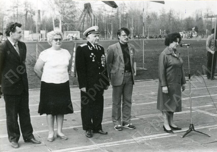 Математический пробег, посвященный памяти Т.Н. Барамзиной. Идет митинг. Стадион юных пионерова. Сад им. А.М. Горького
