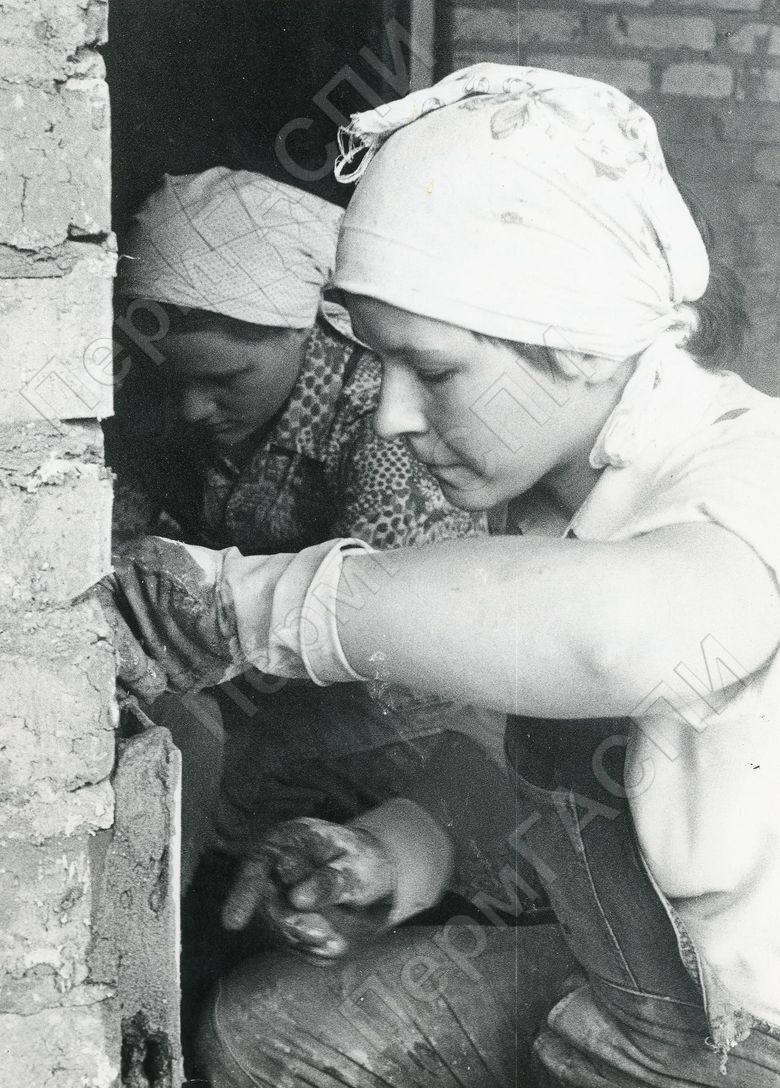 Конкурс профмастерства в летнем строительном отряде "Радуга" факультета иностранных языков пединститута. Шатрова Фаина и Соколова Елена. Совхоз "Красава"