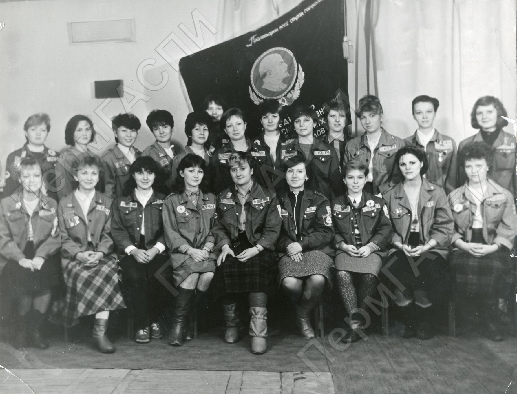 Бойцы студенческого отряда фарминститута "Арника" - победителя областного соцсоревнования среди женских строительных отрядов по итогам трудового семестра 1986 года