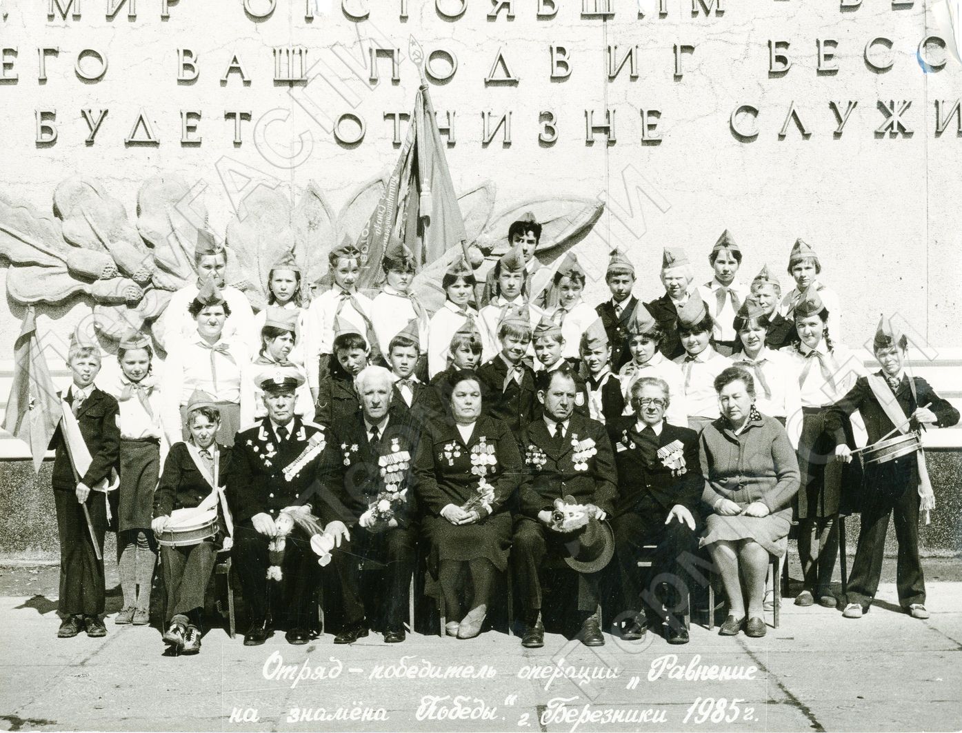 Отряд-победитель операции "Равнение на знамёна Победы" с ветеранами партии и комсомола, Великой Отечественной войны