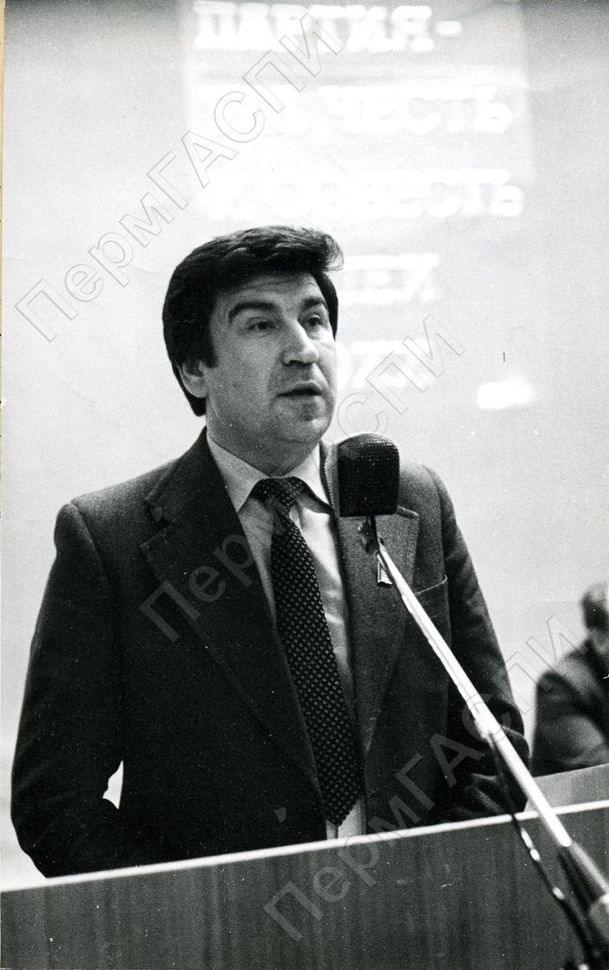 Белкин Г.Г. – 2-й секретарь горкома КПСС выступавший на собрании партийно-хозяйственного актива производственного объединения "Уралкалий".
