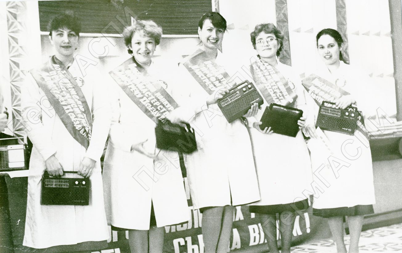 Победители городского конкурса профессионального мастерства среди рабочих-лаборантов, посвященного XX съезду ВЛКСМ - команда от комсомольской организации титаномагниевого комбината