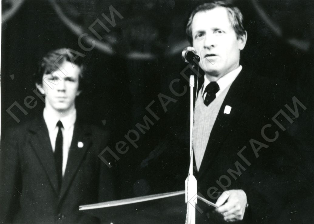 Директор комбината Е.Д. Самусик дает напутствие молодым рабочим Титано-магниевого комбината и вручает символический пропуск на комбинат. Вечер "Посвящение в рабочий класс"