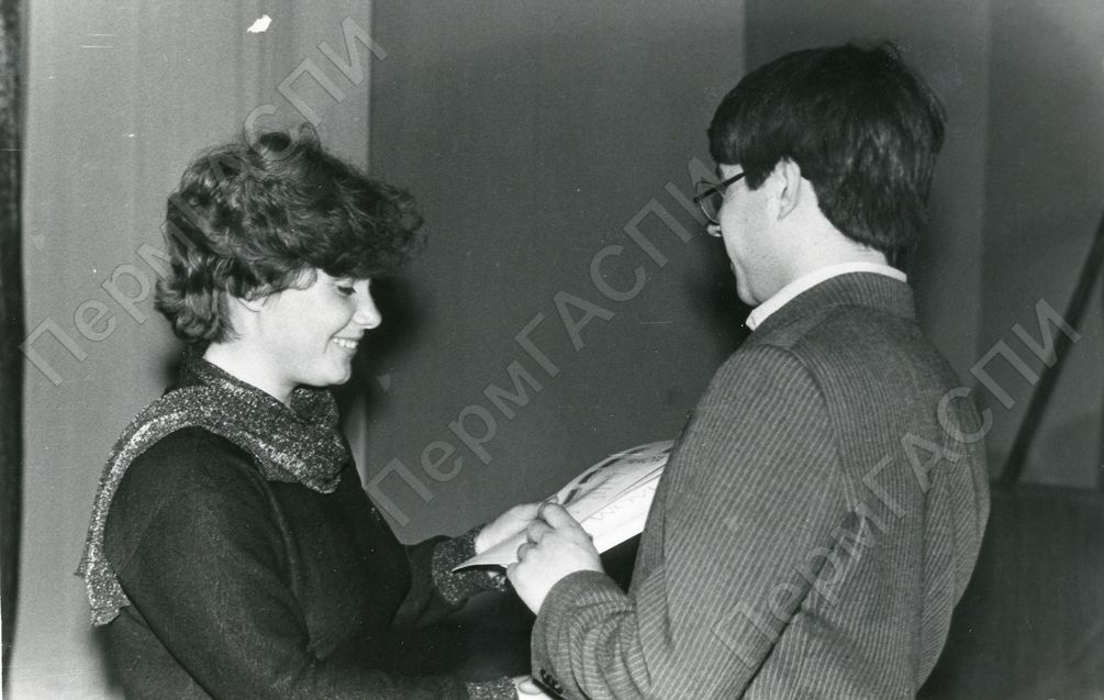 Вручение грамоты комитета ВЛКСМ ПО "Азот" Ташлыкову А., секретарю комсомольской организации цеха № 32 за III место в социалистическом соревновании среди комсомольских организаций, посвященному XX съезду ВЛКСМ