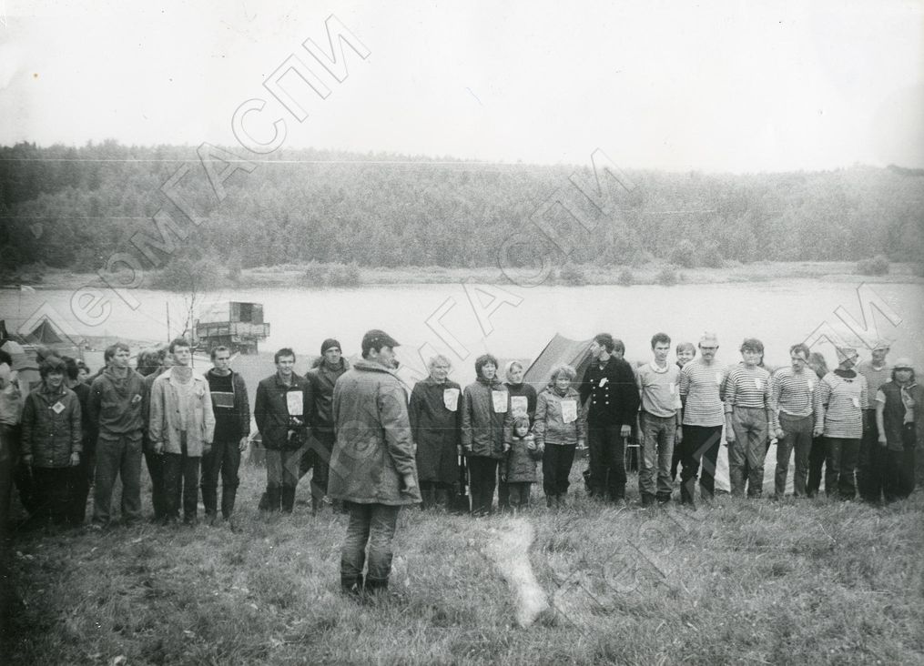 Проведение летнего туристического слета объединения, посвященного 70-летию Октября. Построение команд перед стартом. Березниковское ПО "Азот"