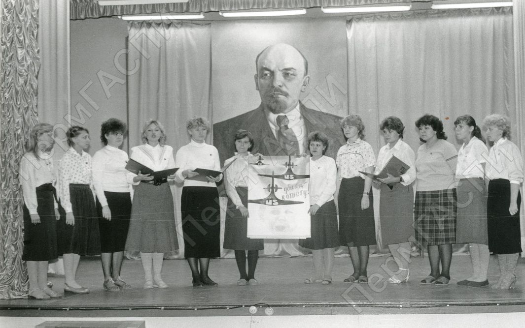 Конкурс защиты политического плаката в честь 69-й годовщины Ленинского комсомола между первичными комсомольскими организациями фабрики. Швейная фабрика