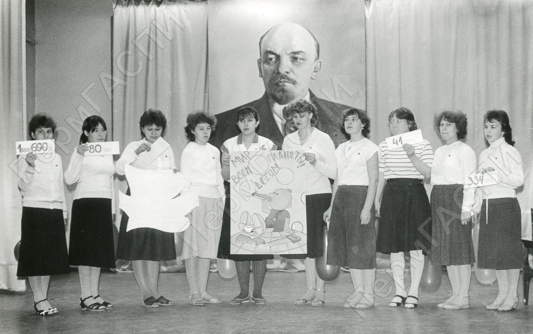 Конкурс защиты политплаката в честь 69-й годовщины Ленинского комсомола. Швейная фабрика.
