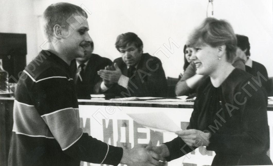 Награждение Усова А. на комсомольском активе объединения. ПО "Сода".