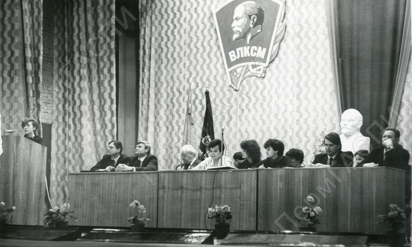 Президиум XXIII отчетно-выборной комсомольской конференции объединения "Сода". ДК Энергетиков