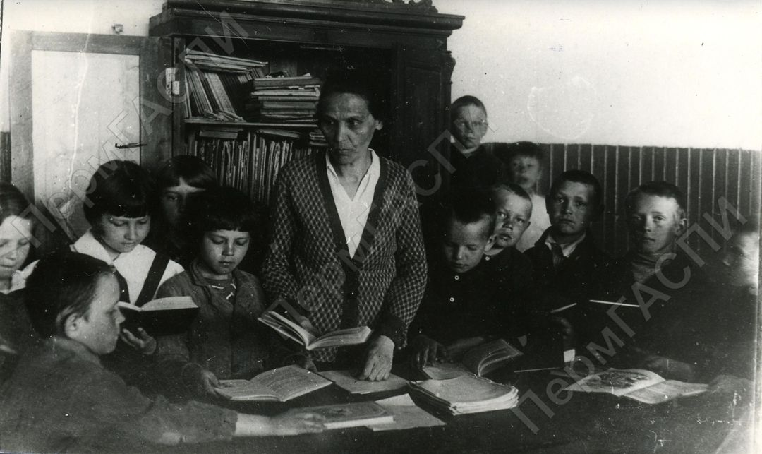 Вшивкова П.С. – делегат 1-го Всероссийскго съезда учителей в 1925 г., получившая из рук Калинина М.И. орден «Знак Почета». Оханский район. Со своими учениками.