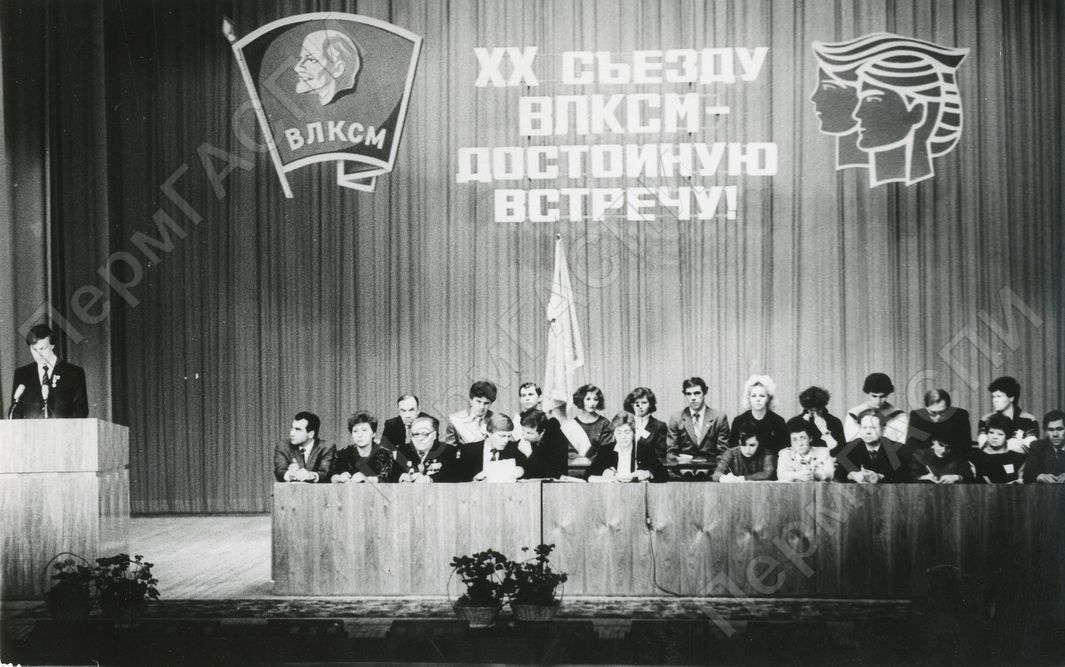 II Советская районная комсомольская конференция. Выступает первый секретарь райкома ВЛКСМ В. Пузырев
