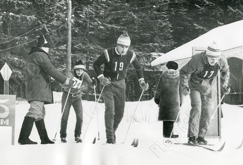 Заводской конкурс "А ну-ка, парни!" На старте участник команды цеха 8 Сергей Алексеев. Лыжная база "Электрон"