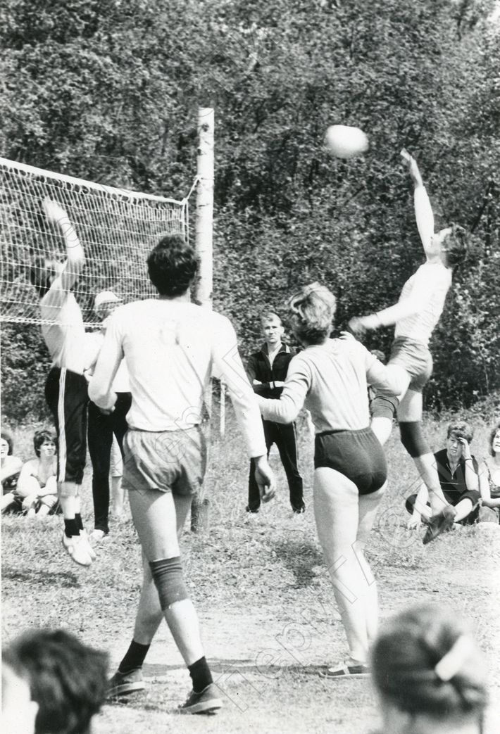 Районный слёт туристов, участников походов по местам народной славы. Игра в волейбол
