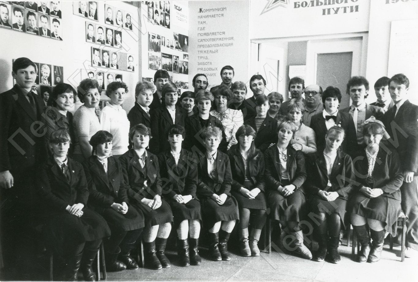 Встреча комсомольско-молодежного коллектива звена Исмаилова А.О. бумагоделательной машины № 7 бумажного цеха № 1 с подшефной группой ПТУ-64. Соликамский целлюлозно-бумажный комбинат
