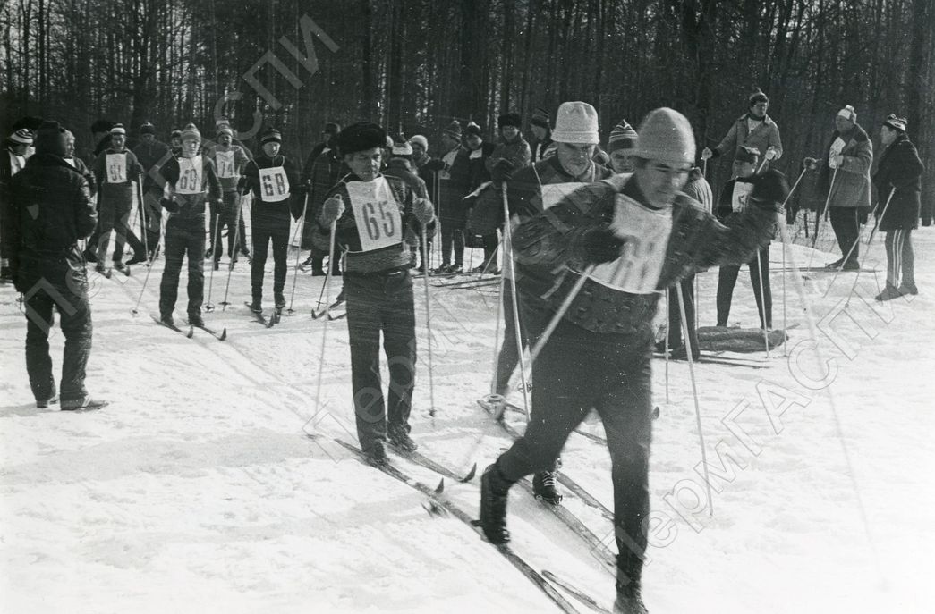 Комсомольцы на стартах зимней спартакиады ПО "Искра". Лыжная база "Искра"