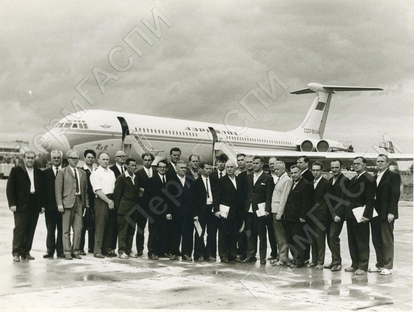 А.И. Дмитриев (10-й слева) среди работников предприятий авиационной промышленности СССР