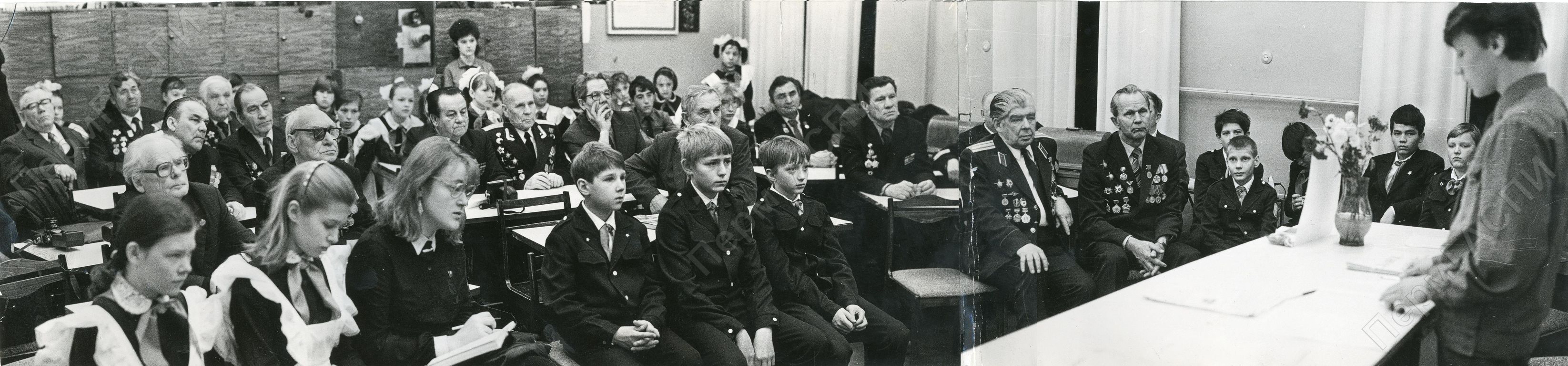 Торжественное открытие музея боевой славы школы № 3 г. Перми в канун 70-летия Великого Октября. Встреча участников клуба "Поиск" и ветеранов 8-й воздушной армии