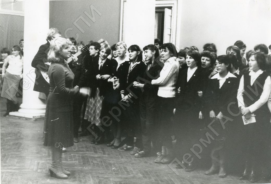 На комсомольской отчетно-выборной конференции треста № 12 делегаты от комсомольской организации СПТУ-39. ДК Строителей