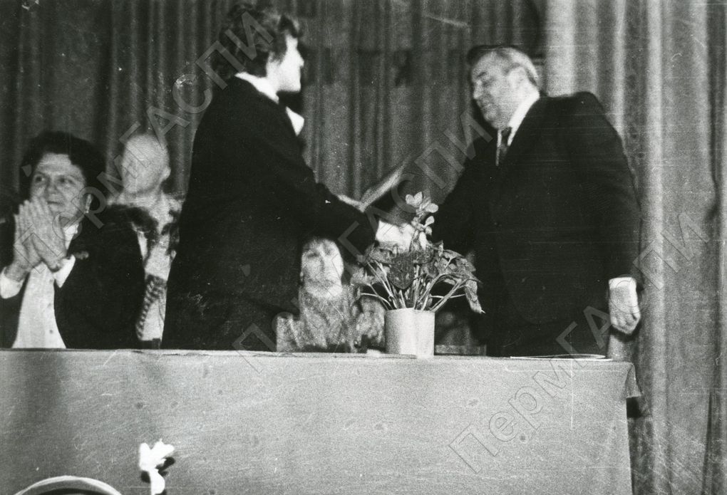 Директору техникума Гальковичу Роману Степановичу вручает грамоту за 2 место среди ССУЗов города в соревновании, посвященному 70-летию Великого Октября, инструктор ГК КПСС Севрук В.Н.