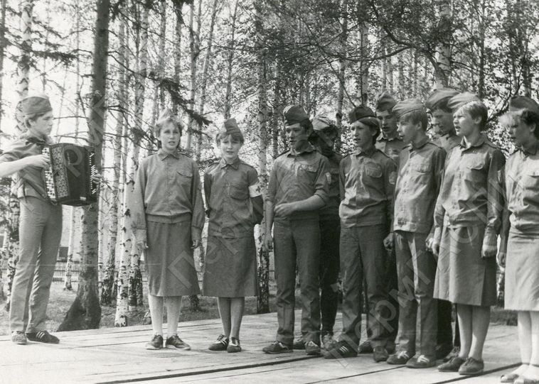 Выступление агитбригады команды Большесосновской средней школы на районной комсомольской игре "Орленок"