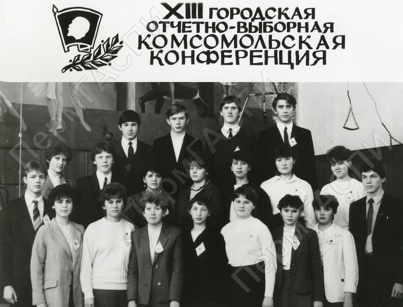 XIII городская отчетно-выборная комсомольская конференция. Делегация учащихся техникума легкой промышленности