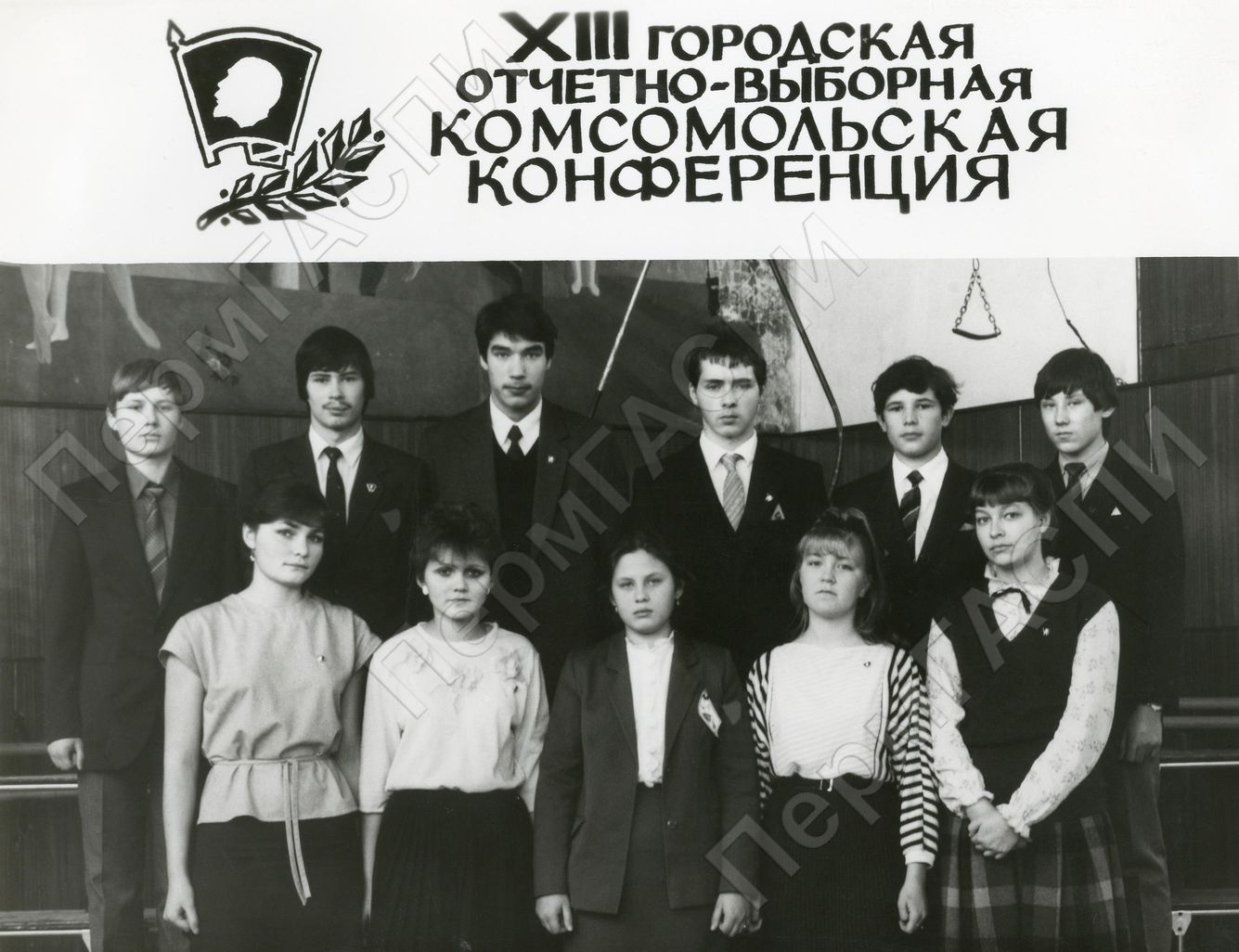 XIII городская отчетно-выборная комсомольская конференция. Делегация комсомольской организации учащихся гидромеморативного техникума