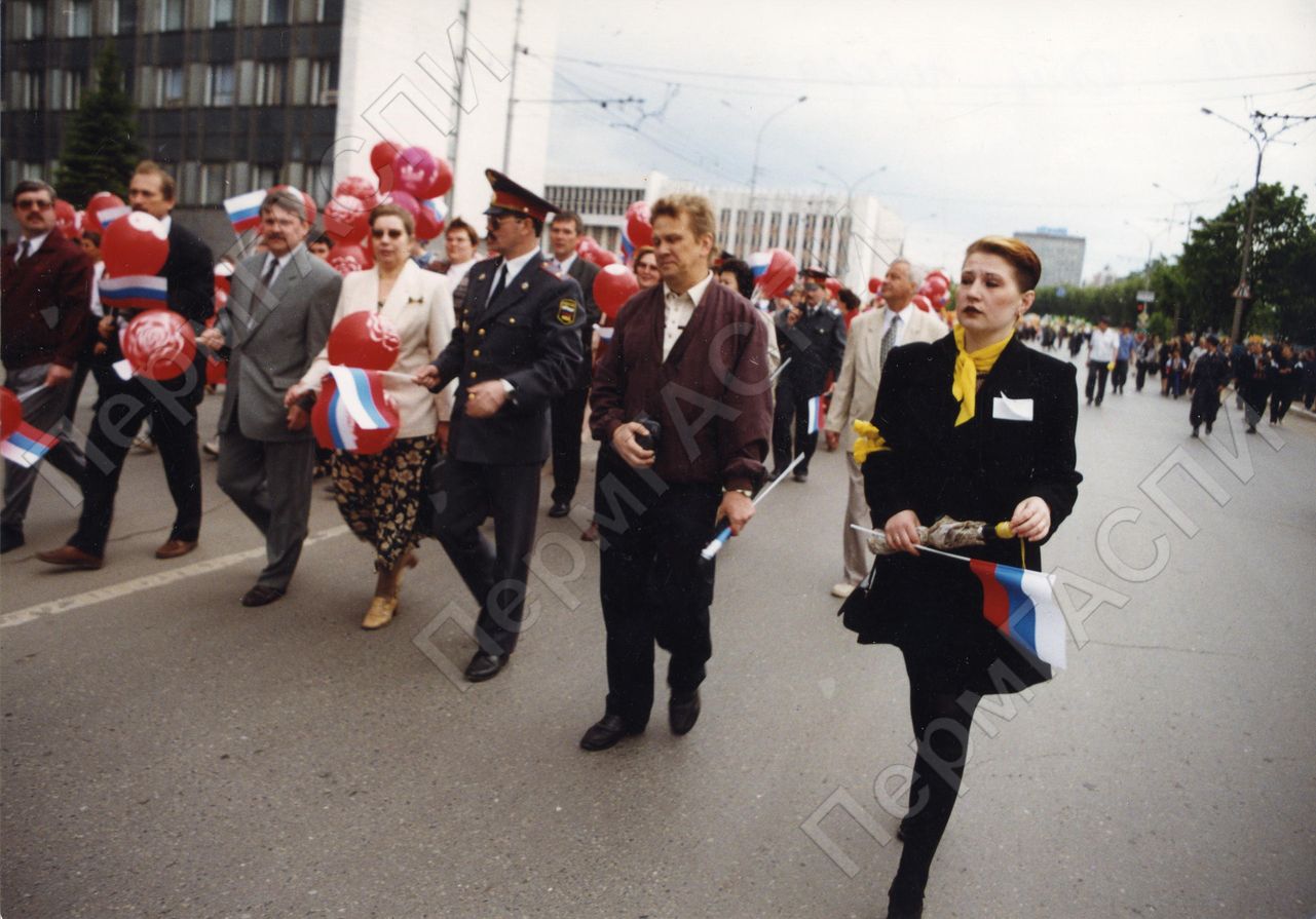 Р.М. Слаутина среди депутатов Пермской городской Думы на праздничном шествии, посвященном Дню города.