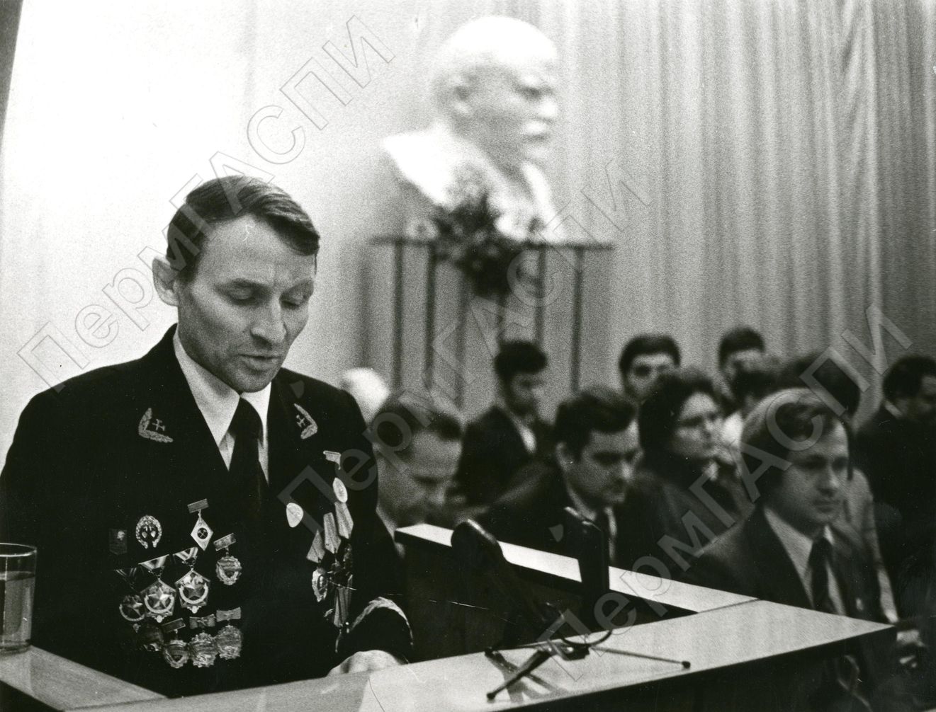 Выступление делегата конференцию т. Карпова И.Т. – бригадира горнорабочих очистного забоя шахты «Таёжная», секретарь цеховой партийной организации. Награжден орденом Ленина, орденом Октябрьской революции, почетный шахтер РСФСР.