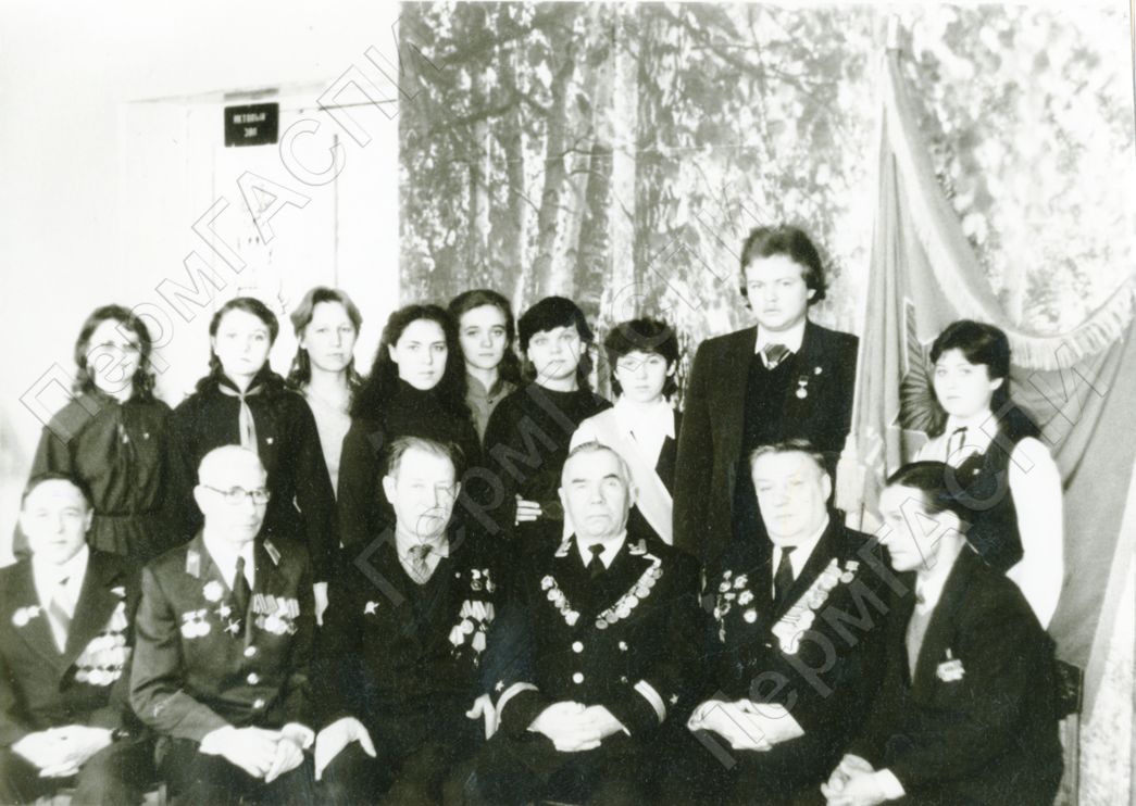 Комсомольское бюро управления и ветераны ВОВ у знамени 196 стрелковой дивизии Осинского полка. ПТУ-57