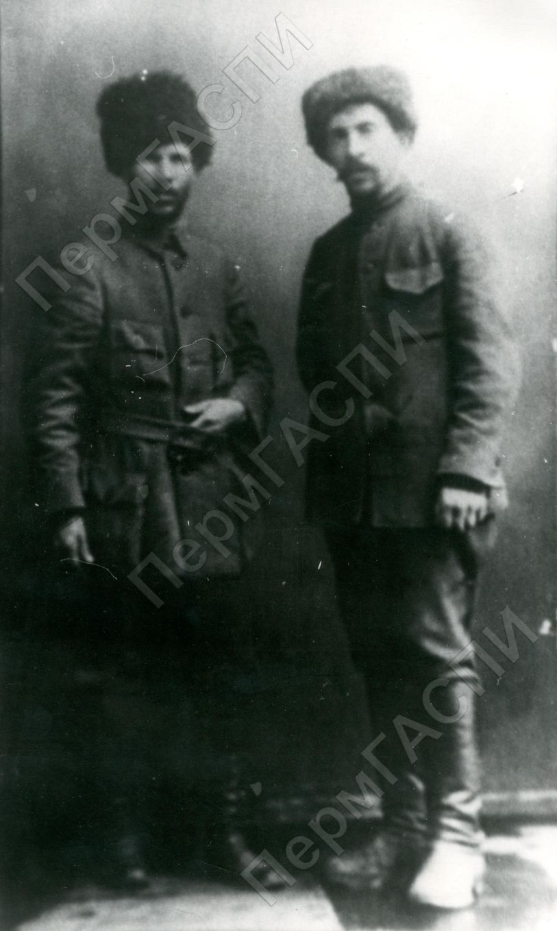 Малков Павел Иванович (1892-1956) - член КПСС с 1912 г. В 1917 г. – член Мотовилихинского Совета рабочих депутатов, в 1918 г. – председатель ЧК, в 1920 г. – начальник войск ВЧК Кавказского фронта. Возглавлял Красную гвардию в Мотовилихе. (Слева направо) Малков Павел Иванович Иванченко Василий Алексеевич