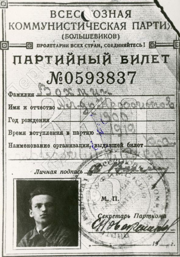 Фотокопия партбилета Вохмина А.Г.