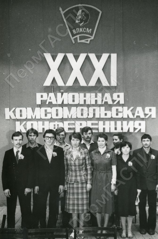 Делегаты XXXI районной комсомольской конференции - представители комсомольской организации колхоза "Победа"