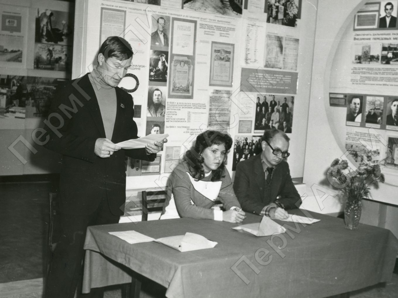 День пропагандиста, посвященнный началу открытия учебного года в школах политпросвящения. С приветственным словом выступает управляющий трестом 12 Головнов Н.И. Музей трудовой славы треста 12 ДК Строителей
