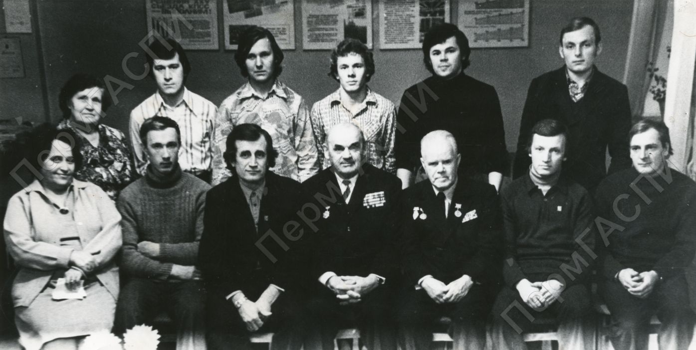 Тематический вечер, посвященный 65-летию ВЛКСМ. Ветераны комсомола и победители трудовой вахты, посвященной 65-летию ВЛКСМ. Мужское общежитие № 57 треста 12