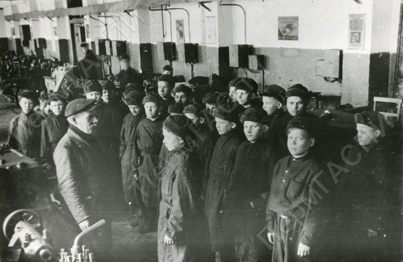 Учащиеся токарного отделения ремесленного училища № 3 г. Молотова в учебной мастерской