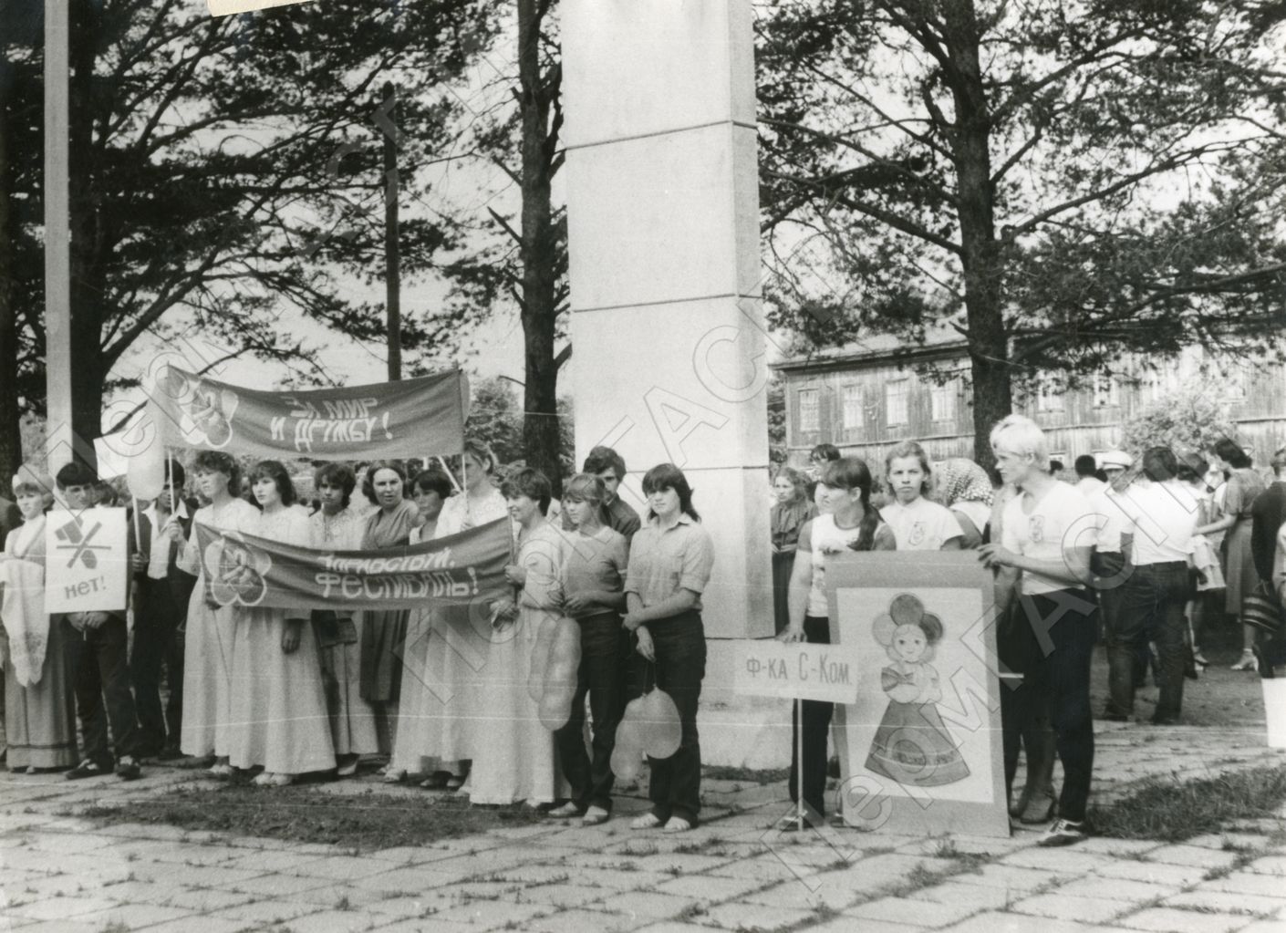 Митинг, посвященный открытию районного фестивального Дня. В центре - делегация комсомольской организации колхоза имени Куйбышева. 3-я справа - секретарь комс. орг-ии Попова Светлана Аркадьевна