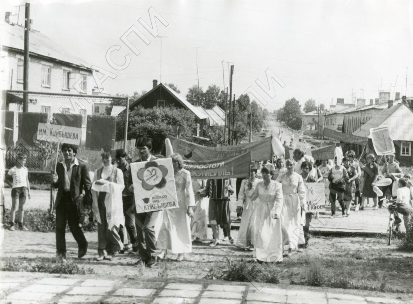 Праздничная демонстрация комсомольцев р-на на фестивальном Дне в честь открытия XII Всемирного фестиваля молодежи и студентов в г. Москве.