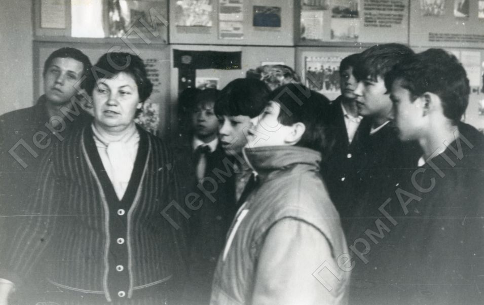 Экскурсия в музее трудовой славы треста КПД. Старший мастер произ. обуч-я Лысикова Н.С. проводит экскурсию с учащимися седьмых классов подшефной школы № 82