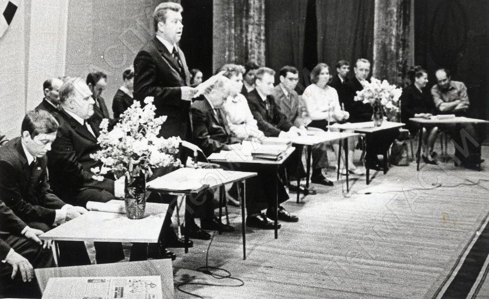 Чествование отличников учебы и производства. Выступает секретарь парткома Куликов Л.А. НИИ полимерных материалов