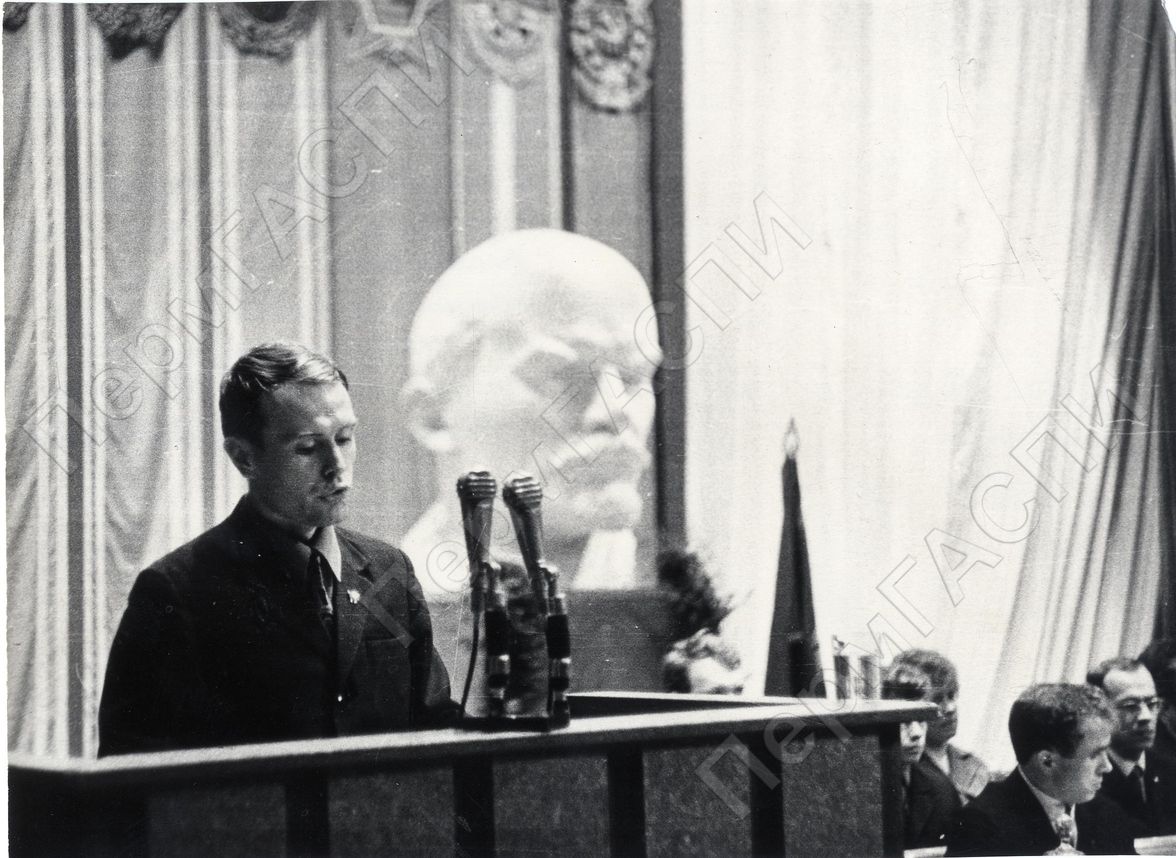 Заводская отчетно-выборная конференция. С отчетным докладом выступает Неласов Н.А. Завод химоборудования