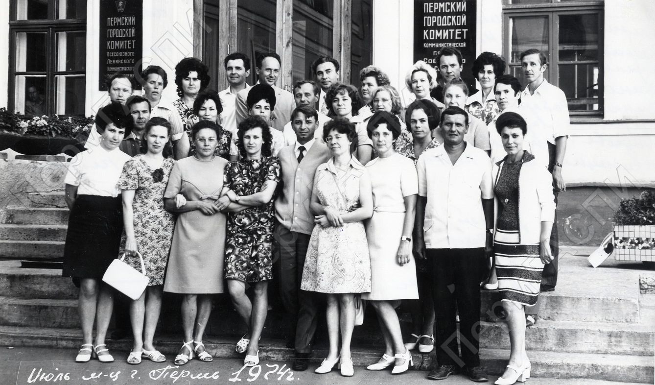 Работники обкома и Пермского горкома ВЛКСМ 60-70-х годов снимаются в честь 50-летия принятия Комсомолом имени В.И. Ленина на VI съезде РКСМ 1924 г.