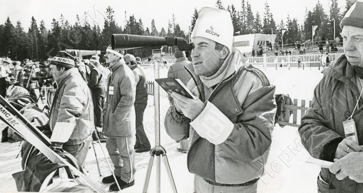 Волнуются тренеры за своих подопечных на гонке биатлонистов на 20 км. IX зимняя Спартакиада народов РСФСР