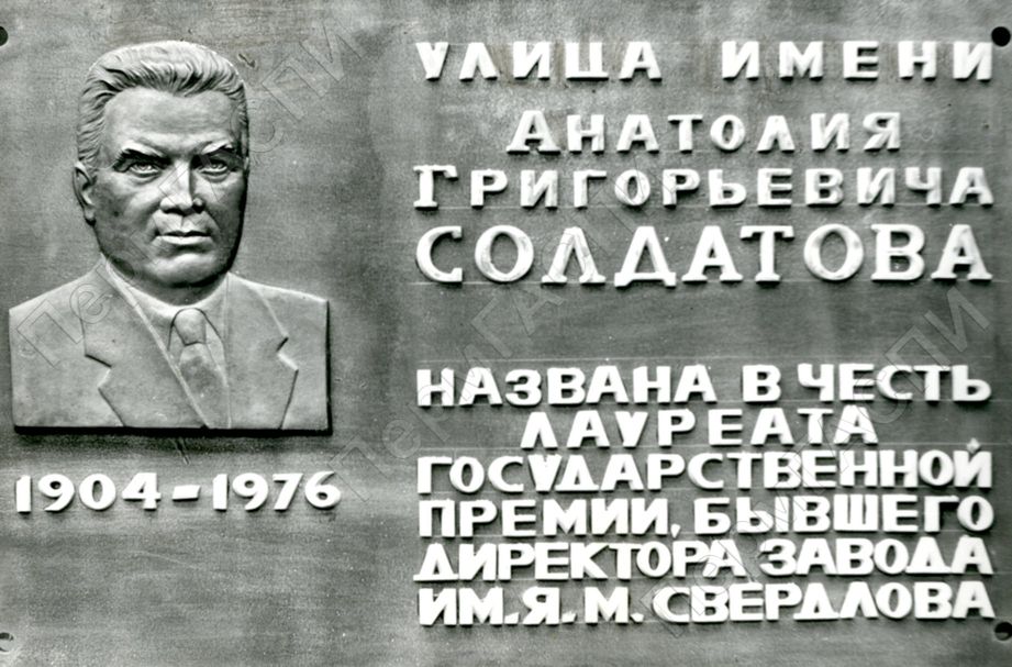 Мемориальная доска на улице Солдатова А.Г. - директора завода им. Я.М. Свердлова.
