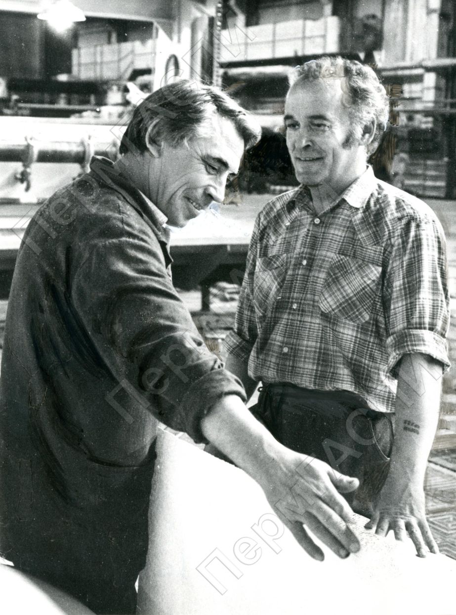 Савинов М.А. и Ренев В.П. - машинисты бумагоделательной машины Камского целлюлозно-бумажного комбината, коммунисты, кавалеры ордена Трудовой Славы 3-й степени.