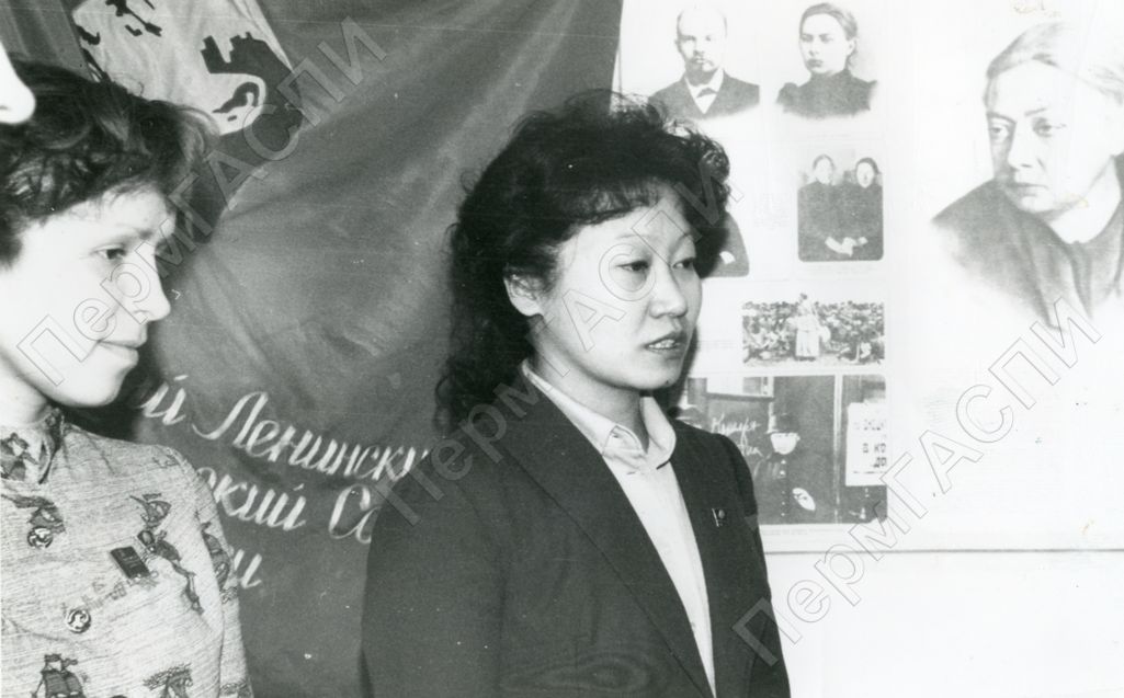 Секретарь комитета ВЛКСМ Цой Н. (справа), зам. по идеологической работе Малкова (Салтыкова) Т. (слева). Комитет ВЛКСМ Пермского фарминститута