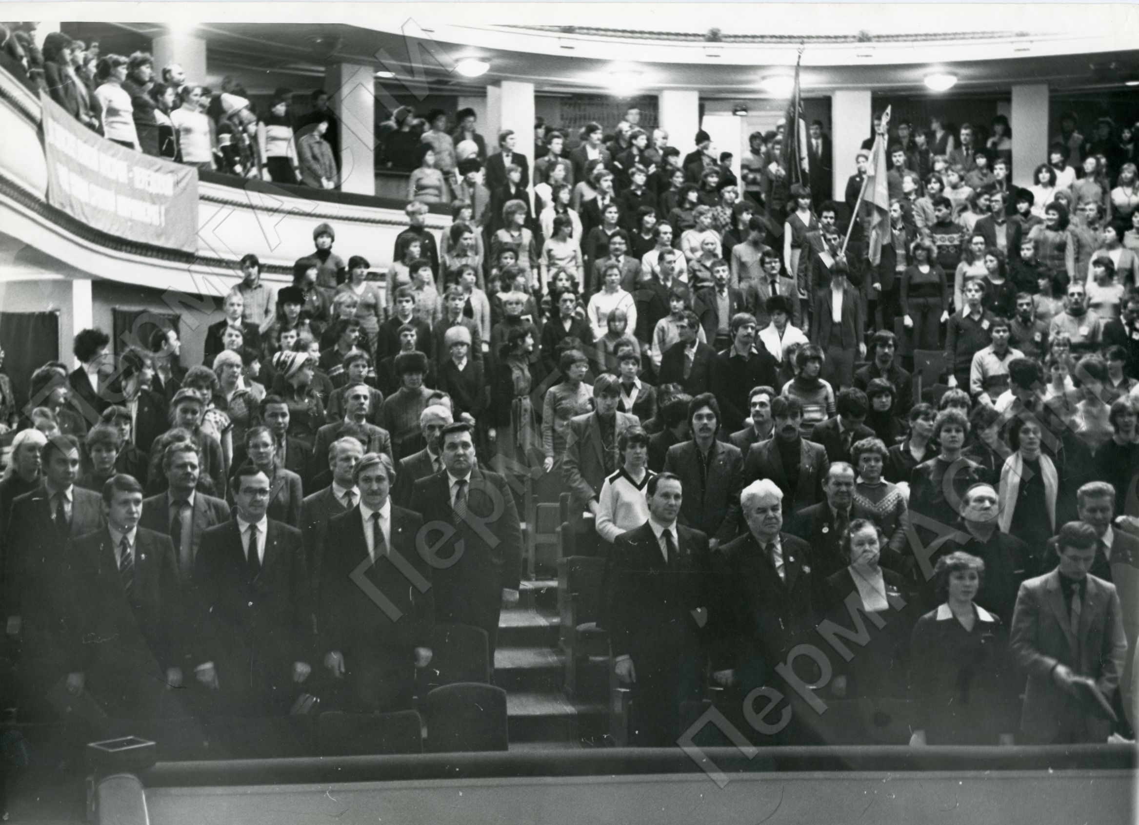 XXV заводская комсомольская отчетно-выборная конференция. Во время вноса знамени. Завод имени В.И. Ленина