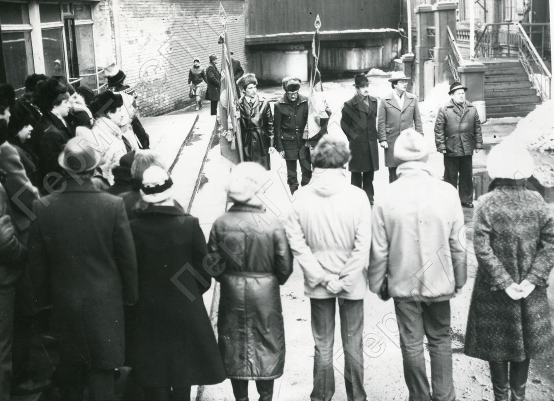 Митинг на заводе им. В.И. Ленина, посвященный передаче Знамени 155-го авиационного полка. Завод им. Ленина. 17. 04. 1985 г.