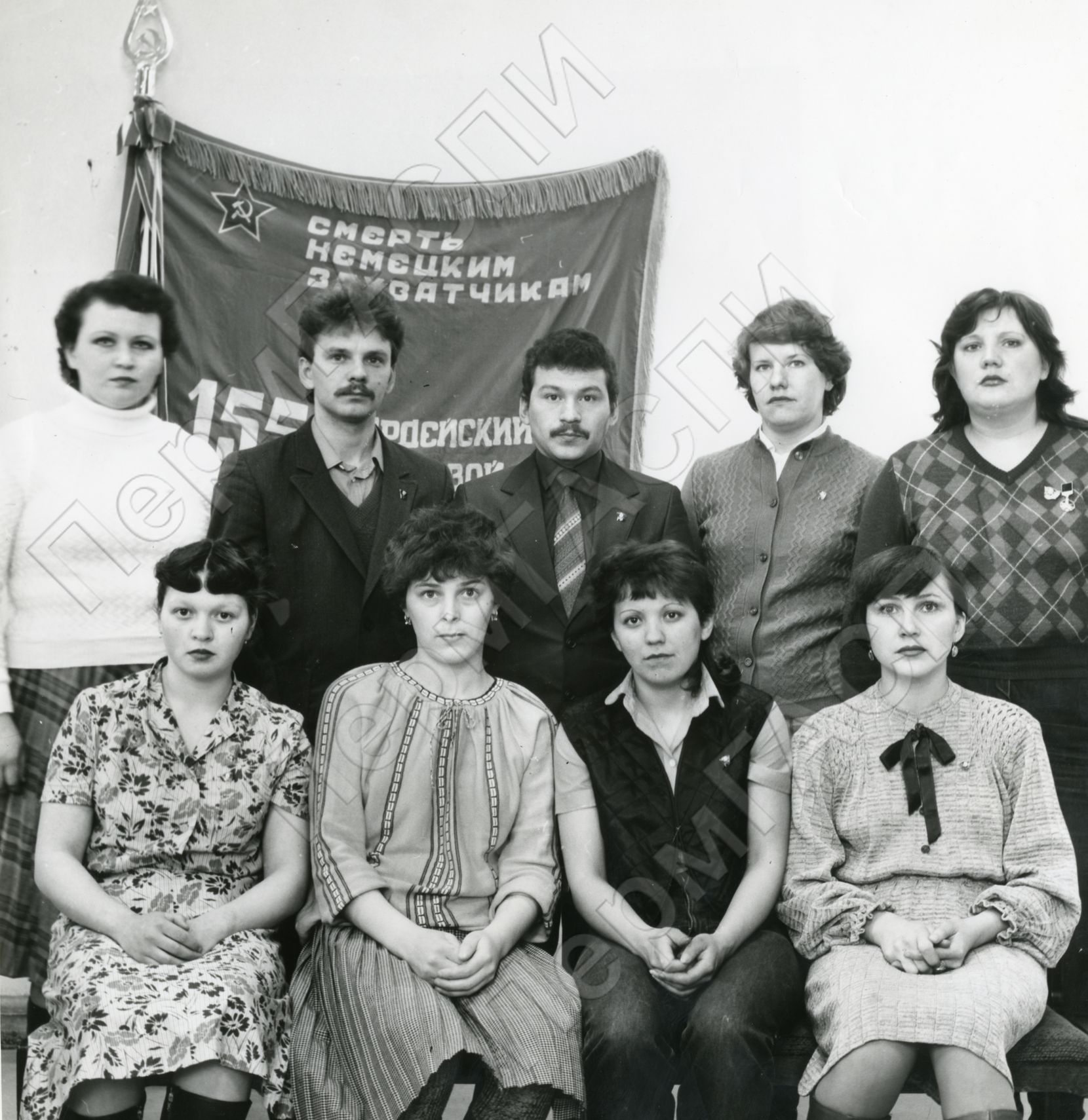Члены комсомольского бюро цеха № 91 завода имени В.И. Ленина у знамени 155-го Киевского авиационного полка